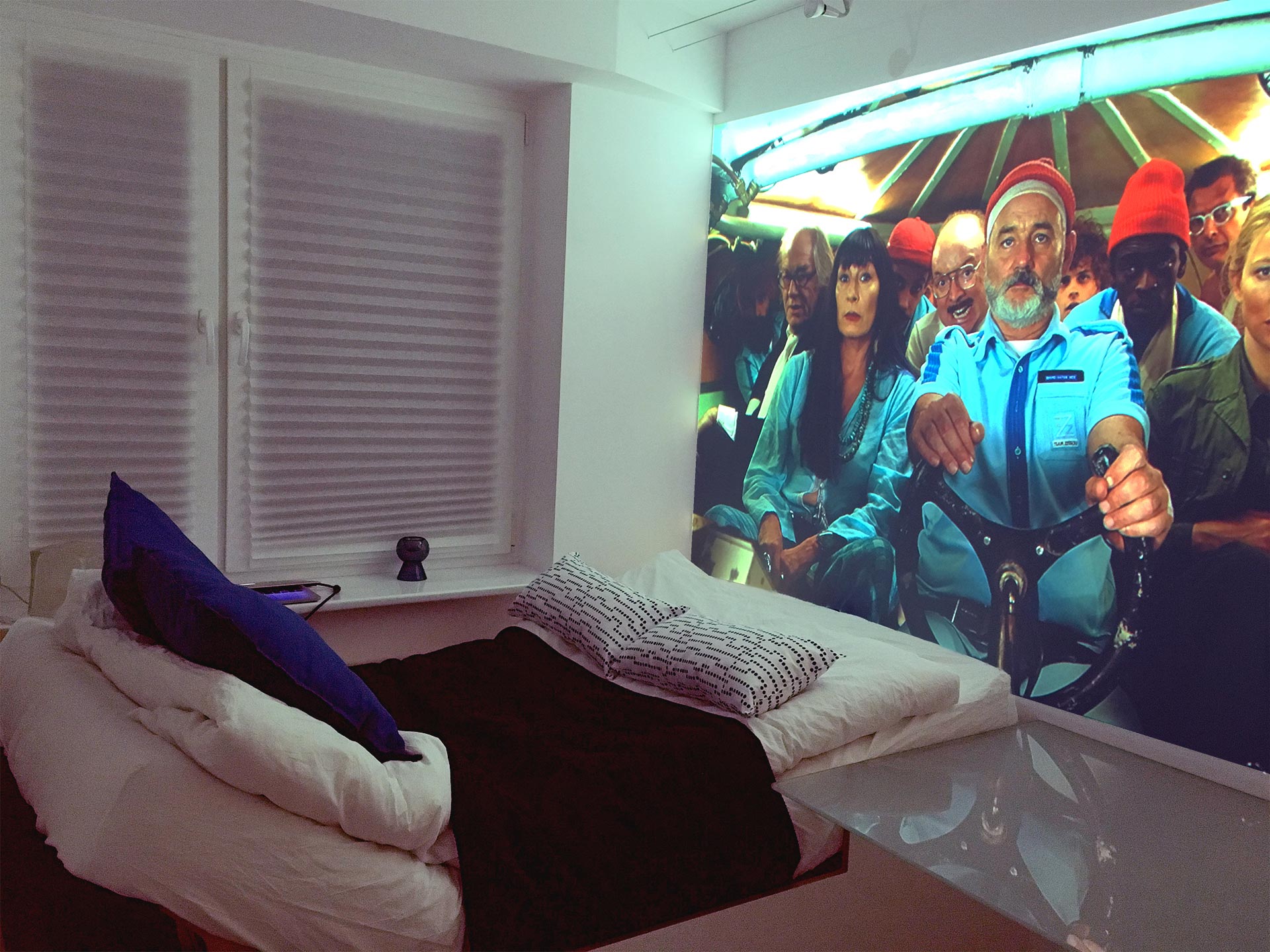 aka The Bed TheaterCompact bedroom with the largest wall occasionally taken over by Netflix. The double bed turns into a chaise lounge. Largest desk in the house.